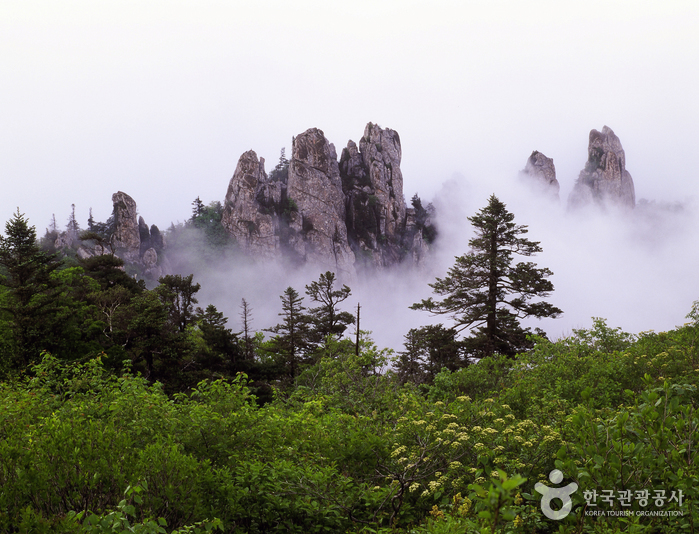 A 1.708 mètres d’altitude, Daecheongbong est le plus haut sommet du mont. Seoraksan Parc national et le troisième plus haut sommet en Corée après le Mt. Halla (1.950 mètres) et le mont. Jirisan (1.915 mètres). Elle marque le point où Nae-Serok (intérieur de Serok) répond à Oe-Serok (exterieur Serok). En raison du climat irrégulier et des basses températures, elle abrite diverses plantes de haute montagne ainsi que 50 plantes rares, mais aussi une grande variété d’oiseaux sauvages. De Daecheongbong Peak, vous pouvez apprécier le paysage fascinant du Mont. Seoraksan dans les quatre directions.