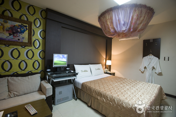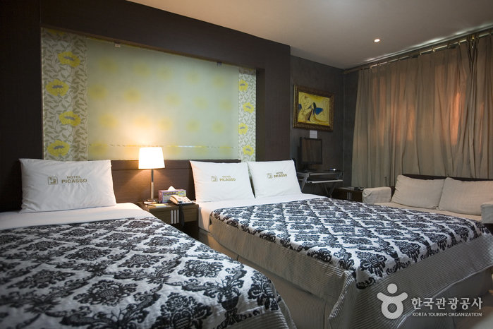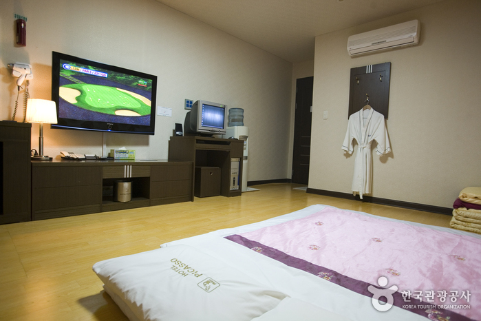 Hotel Picasso is a dark modern building with more than 50 rooms and a parking lot on the ground floor. There are traditional Korean rooms, rooms with a bed, and vacation home-type rooms. The Garden VIP Suite Room can accommodate up to five people, and it comes with an outdoor kitchen and barbecue facility for guests to cook. There is a desktop computer in some of the rooms, so those who need one can ask for a room with a computer when making a reservation. Nearby tourist attractions include the Cheongok Cave, a limestone cave with a total depth of 1,400 meters, located in the downtown area, and Chuam Beach, which is a popular destination among families during the summer. There is also Mureung Valley in between Dutasan Mountain and Cheongoksan Mountain for those looking for a quiet place to relax during the hot summer days.