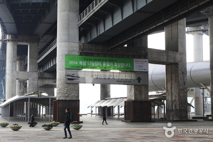 Donnant sur le fleuve Han, le square sur la berge est un lieu de spectacles et d’évènements culturels divers. Utilisant une technologie selon laquelle la lumière « rebondit » contre l’eau, l’ « Ecran d’Eau » (installé sur la scène principale du square), diffuse des films ou dessins animés de 20h à 22h pendant les vacances.