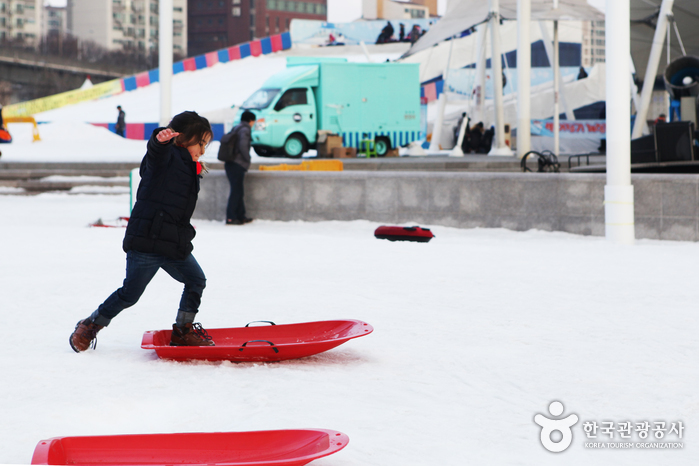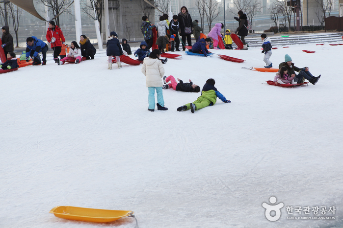 Piste de luge au parc Ttukseom de Hangang (한강공원 뚝섬 눈썰매장)