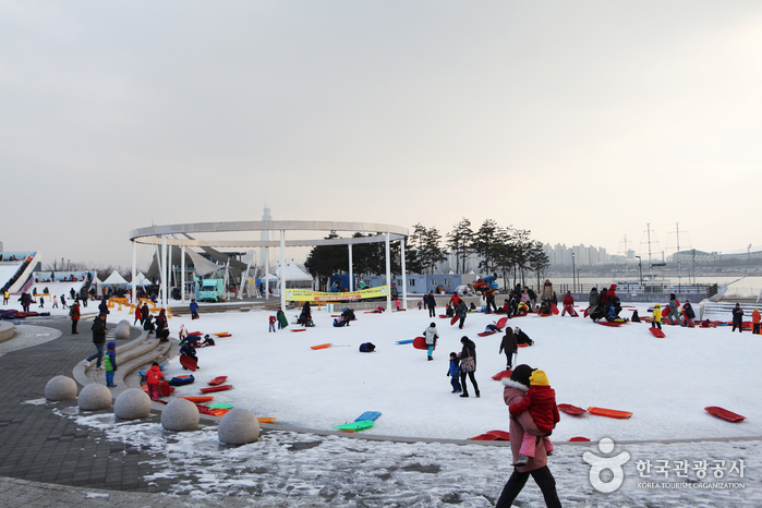 La piste de luge au parc Ttukseom de Hangang possède une grande et petite piste de luge. D’ailleurs cet espace est utilisé comme piscine pendant l’été.