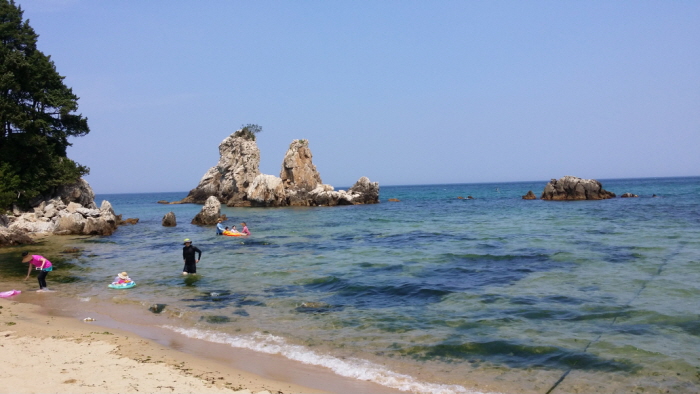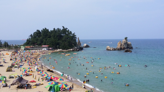 Cette plage est tout particulièrement magnifique et elle a souvent été le décor de tournages de plusieurs films et drames coréens tels que « April snow », « One fine spring day » et « South of the sun ». Les forêts de pins qui l’entourent contribuent à créer une ambiance unique à toute saison.