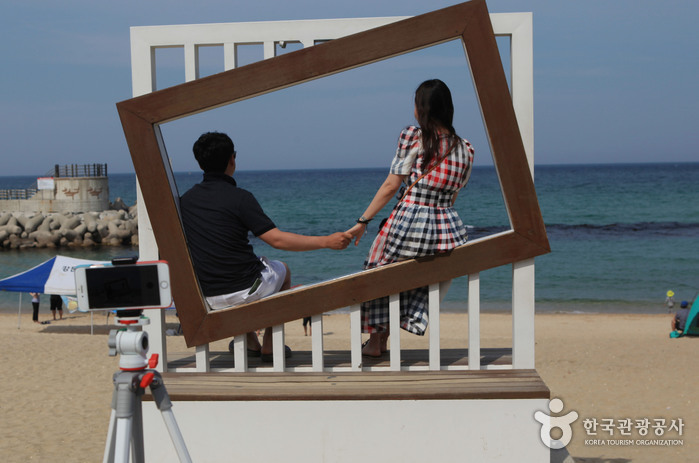 La plage de Gyeongpo est un banc de sable situé entre le lac Gyeongpoho et l’océan, la plage s’étend sur 6 km. Il s’agit d’une attraction touristique très bien connue parmi les Coréens, qui permet d’apprécier l’harmonie entre la nature et les vestiges culturels. La plage de Gyeongpo est aussi connue pour ses levers de soleil. On trouve aussi d’autres attractions dans les environs, comme la forêt de pins (à 4km) et les rosiers sauvages. Les personnes qui aiment faire de la pêche dans l’océan ont l’occasion de prendre un bateau vers l’allée rocheuse qui part de la plage. De nombreux touristes viennent sur place pour visiter les anciens bâtiments au milieu de ce paysage naturel magnifique comme le pavillon Ojukheon. Au printemps, le lieu abrite un festival des cerisiers japonais, organisé à l’entrée de la plage Gyeongpo, alors qu’en été le lieu abrite un festival de l’été et d’autres événements culturels très variés (événement littéraire traditionnel, festival de danse de la plage, etc.)