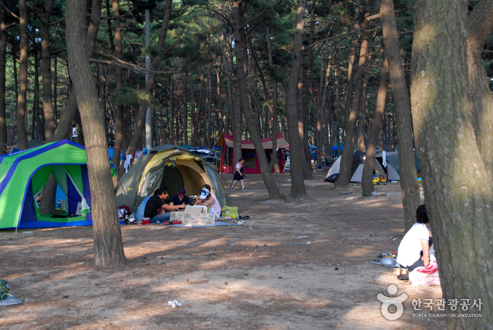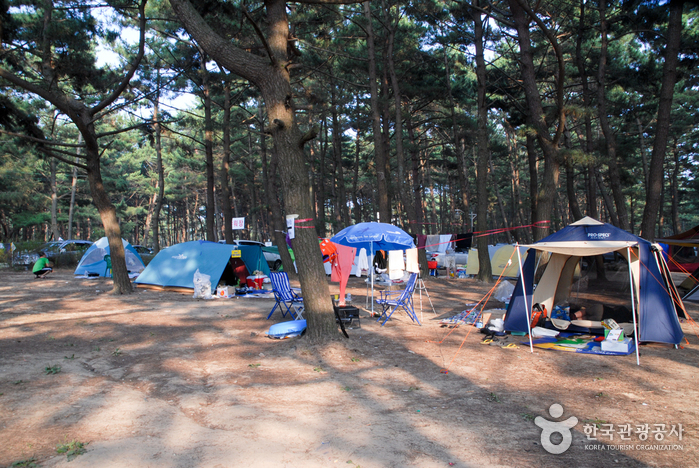 La plage Mongsanpo, qui se trouve dans la municipalité de Taean-gun dans la région de Chungcheongnam-do, est la plus grande plage sur la péninsule de Taean. La plage avec son sable très fin et les pins qui bordent le littoral offrent un payage sublime. Autour du chemin de promenade qui mène vers la forêt de pins, les visiteurs peuvent également observer des dunes maritimes et des vasières.