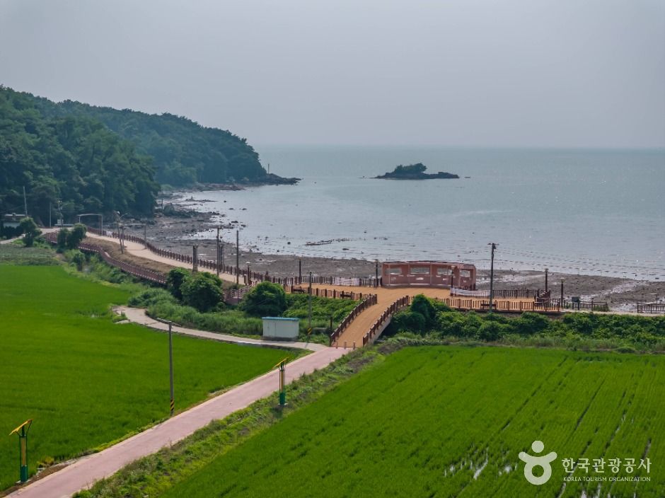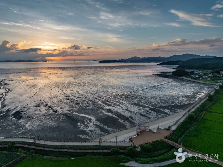 L’île de Ganghwado, dont l’ensemble du territoire constitue un patrimoine historique et culturel, attire de nombreux visiteurs venus à la fois pour son intérêt historique et pour admirer ses magnifiques paysages côtiers. Sur la plage de Janghwari, située à l’extrémité sud-ouest de l’île, se trouve le point d’observation du coucher de soleil de Janghwari, un lieu aménagé pour contempler le soleil se couchant directement sur la mer de l’Ouest.