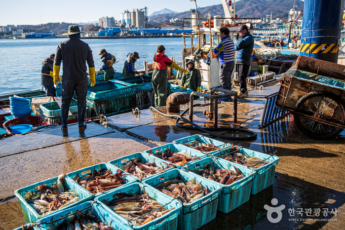 Situé à Donghae (Gangwon-do), le port Mukho était le meilleur port de commerce sur la côte Est en 1941. Il a depuis été transformé en port de pêche. Sur le site, on peut visiter un marché de fruits de mer avec un grand choix de calmars, de maquereau, de crabes, etc. Tôt le matin, les marchands se réunissent au marché pour acheter les fruits de mer frais. Le port Mukho est surtout très célèbre pour ses calmars (le plus grand marché de la cote Est) avec le port Jumunjin