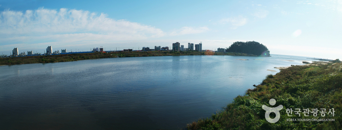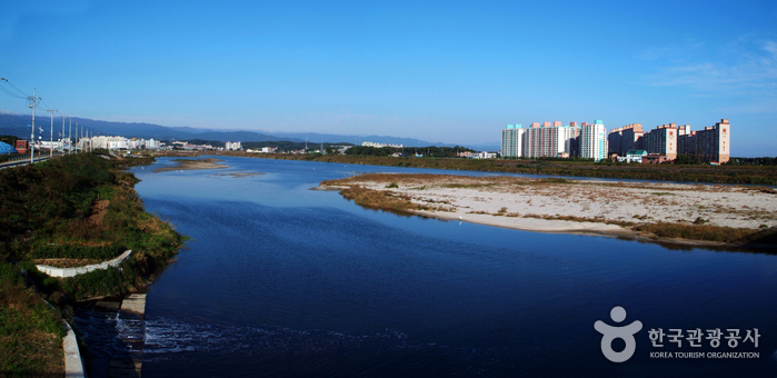 La forêt de pins située en amont offre une vue remarquable de la ville de Gangneung. La rivière fournie également aux villes alentours l’eau potable et est utilisée pour les agricultures. La rive a été très bien aménagée depuis la création d’un entreprise d’épuration en 1992.