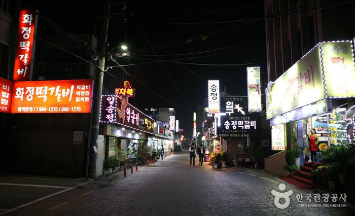 Rue des plats tteokgalbi à Gwangju (광주 송정동 떡갈비 골목)