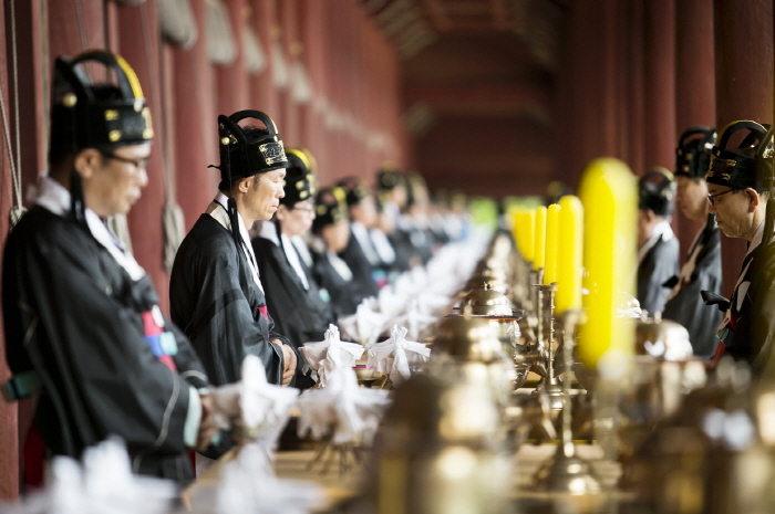 Le sanctuaire royal de Jongmyo est inscrit au patrimoine culturel mondial de l’Unesco grâce à ses traditions et ses coutumes tels que les services funéraires et la musique traditionnelle qui y sont très bien conservés.