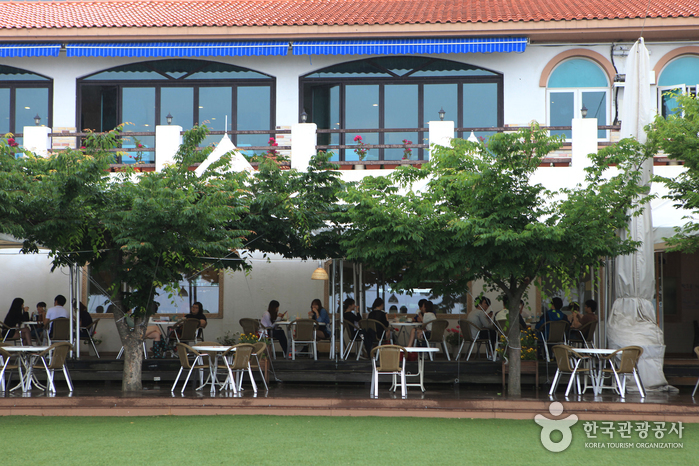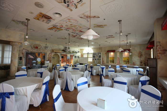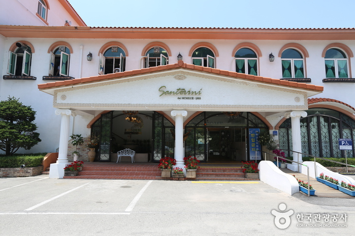 Santorini is a 2-story, traditional Italian restaurant with a luxurious interior. During the warmer seasons, tables are placed on a green grassy field allowing customers to dine outside while enjoying the fine weather and scenery. Not only well known for its traditionally-prepared Italian cuisine made with fresh ingredients, the restaurant is also famous for its huge selection of wine. A café and bakery are located on the first floor, perfect for those who just want to relax with a beverage or enjoy a light meal.