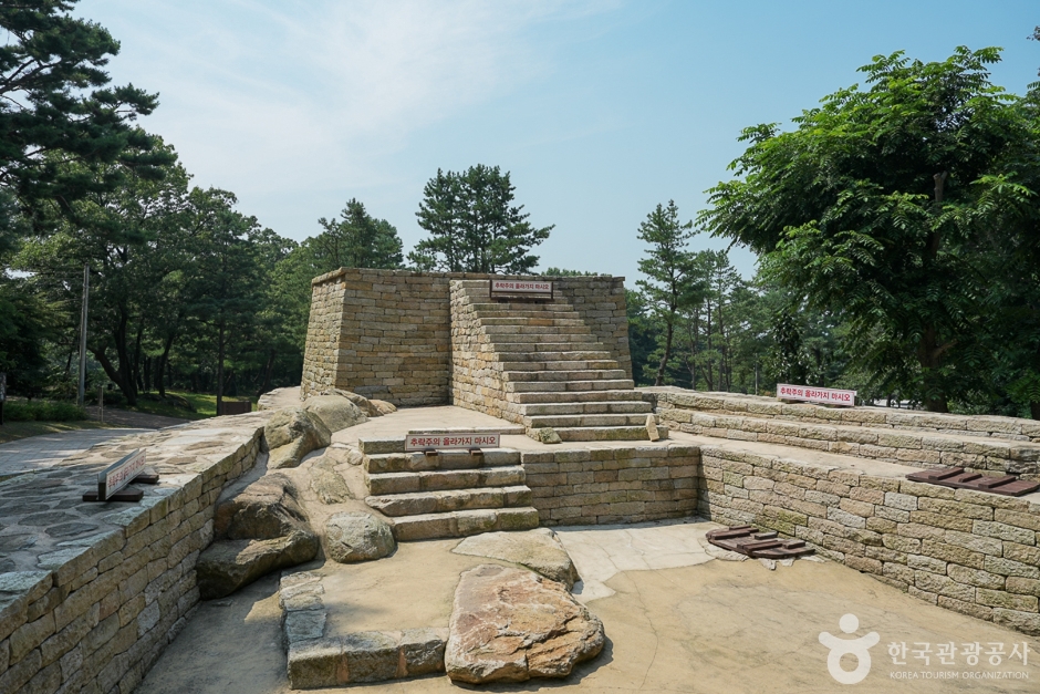 Au sommet se trouve le Chamseongdan, un autel mentionné dans plusieurs ouvrages historiques tels que Goryeosa et Annales du roi Sejong, comme étant le lieu où Dangun Wanggeom, fondateur légendaire de la Corée, aurait offert des rites au ciel. La base de l’autel est circulaire, symbolisant le ciel, tandis que l’autel lui-même est carré, représentant la terre, formant ainsi une structure symbolique dite ciel rond, terre carrée.