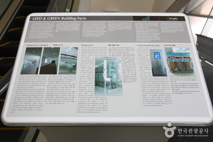 D’une surface de plus de 54 000 m², Songdo Conventia est un centre de convention moderne doté de cinq spatieux étages. Il peut accueillir 450 stands d’exposants, divers événements d’exposition et des spectacles. Les salles de réunion sont équipées des dernières installations en matière de technologie de l’information, telles que des connections internet sans fil, des caméras contrôlées par la voix et des projecteurs LCD. Le centre de convention peut accueillir plus de 2 000 visiteurs et offre d’excellets services et équipements pour des banquets des réunions de famille, des mariages et plus encore.