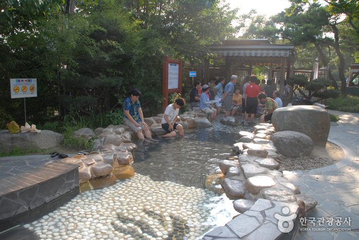 Le centre de bains de pieds dans les sources thermales de Yuseong désigne un bain de pieds à ciel ouvert où il est possible de profiter d’une eau thermale naturelle à 40 degrés. Au total, 200 personnes peuvent profiter des bains de pieds en même temps dans quatre bains d’une suface totale 20 778 ㎡.