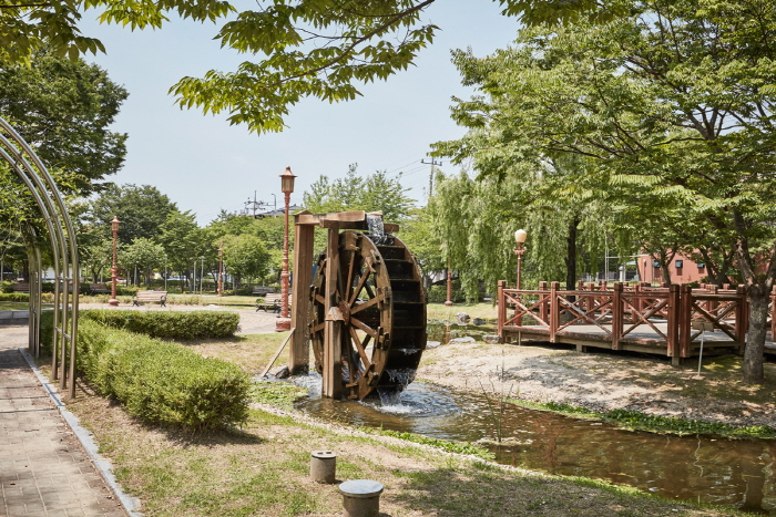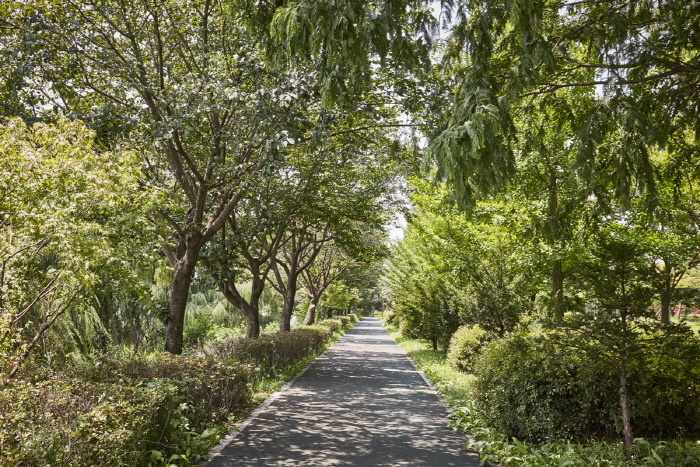 La zone est ombragée par 200 arbres zelkovas vieux de 30 à 50 ans. On y trouve également des salles de bain, des fontaines à eau et des parkings, ce qui en fait le lieu idéal pour camper et nager au bord de la rivière. On peut également y faire du bateau et ramasser quelques-unes des pierres à la forme unique éparpillées sur la berge. Le long de la rivière, vous trouverez un centre commercial, des aires de repos, une salle de jeux vidéos, des manèges (16 attractions et un bateau viking) et d’autres installations pour satisfaire tous les goûts des visiteurs.