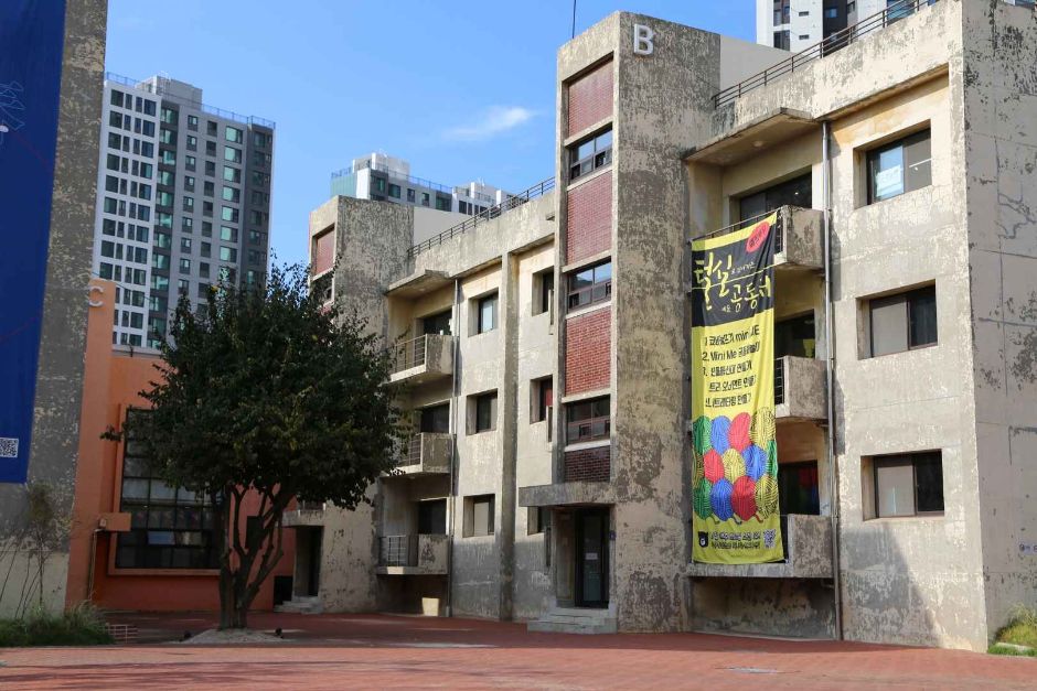 Construit en 1976 et utilisé comme résidence jusqu’à sa fermeture en 1996, le bâtiment est resté à l’abandon pendant plus de vingt ans. Le tournant est survenu en 2016, lorsque le site a été sélectionné pour un projet de régénération culturelle du ministère de la Culture, des Sports et du Tourisme. En conservant la façade vieillie afin de préserver près d’un demi-siècle d’histoire tout en aménageant un intérieur propice à la création des jeunes artistes, l’ancien immeuble a été réinventé en un lieu où cohabitent passé et présent.