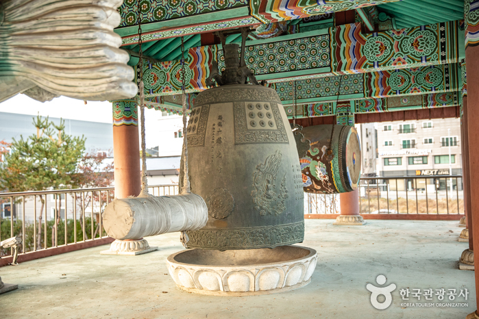 D’après la légende, Hakhadong était un lieu où résidaient les divinités quand elles descendaient des cieux. Quand le temple de Jagwangsa fut construit sur ce site, Song Siyeol considéra cela comme un signe de bonne fortune, et dans l’espoir d’élever des jeunes gens talentueux pour servir le pays, il construisit une école de village près du temple et y éduqua ses élèves. Durant la construction de l’école, il planta également un genévrier. En entrant dans le temple, les visiteurs trouveront la pierre commémorative de Seongjeonnyeongdangji sur leur gauche. Cette pierre a été a été placée là en mémoire de Song Siyeol et de son école qui possède une grande valeur historique. Près de la pierre commémorative se trouve un étang où les carpes nagent paresseusement autour des fleurs de lotus. A gauche de l’étang se trouve une grosse cloche qui sonne chaque jour 28 fois le matin et 33 fois l’après-midi, et à droite se trouve le principal hall du Dharma. Au-delà de la barrière de bambou, on peut trouver un puits, une salle d’eau et des cabines de douche. L’atmosphère sereine de l’endroit apporte la paix de l’âme, permettant aux visiteurs de se relaxer et de se sentir à l’aise. A l’intérieur du temple se trouvent enfin des artefacts comme le Beopgo, le Mogeo et l’Unpan, qui étaient utilisés par les pratiquants du Bouddhisme pour purifier leurs esprits de la douleur et du doute. Le bâtiment principal du temple est une imposante structure de deux étages, à l’intérieur de laquelle les visiteurs peuvent apercevoir des panneaux portant diverses inscriptions accrochés au mur.