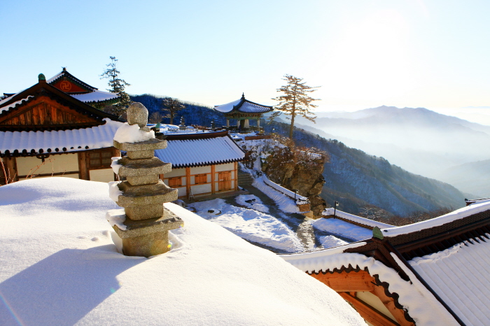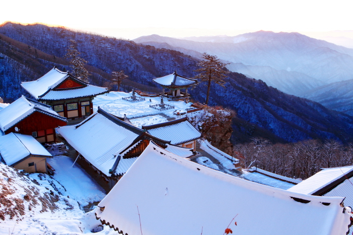 L’époque exacte de la fondation Sangwonsa n’est pas connue, mais à en juger par la pagode en pierre et d’autres reliques du temple, sa construction est estimée à la dynastie Shilla. Les deux pagodes en pierre devant le sanctuaire ajoutent la grandeur au temple en haute montagne et sont désignées comme patrimoines culturels du Gangwon-do.