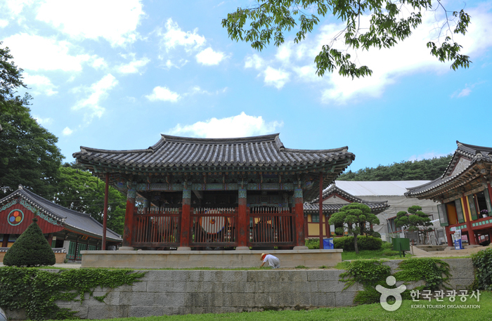 Le temple Silleuksa se trouve à côté d’un village situé le long des eaux bleues et des larges plages de sable de la rivière qui descend du mont Bongmi au fleuve Yeo. On prétend, à tort ou à raison que ce temple a été bâti par le moine Wonhyo durant le règne du roi Jinpyeong de la dynastie Silla.