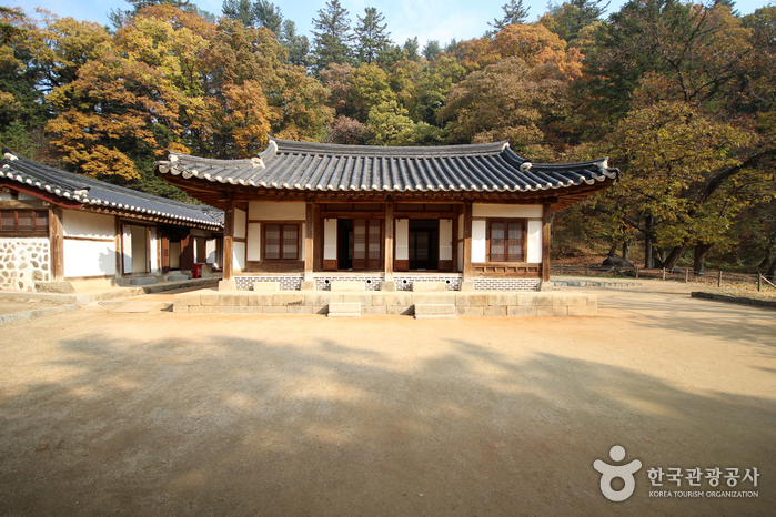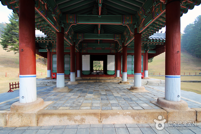 Le Roi et sa Reine reposent séparément. La tombe de gauche est celle du Roi Sejo et un pavillion se tient entre les deux.