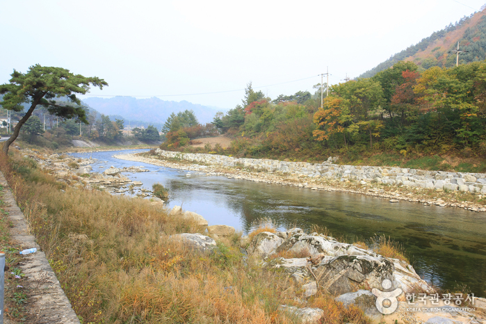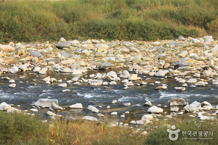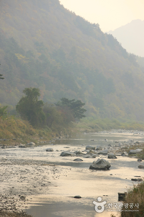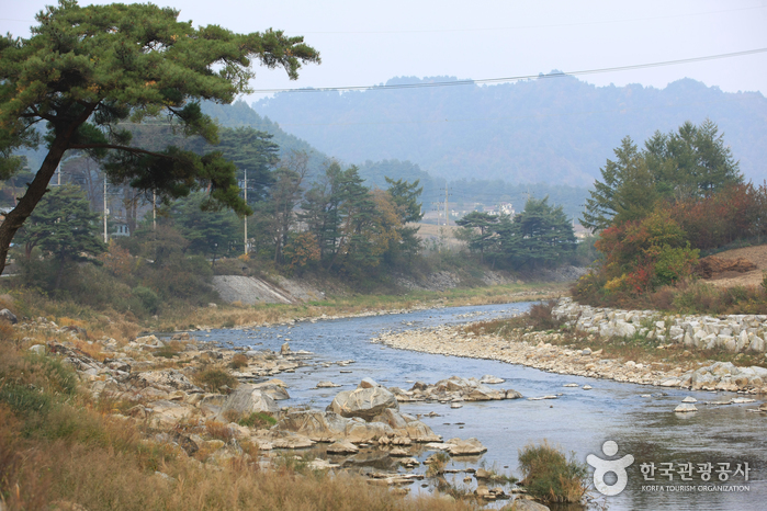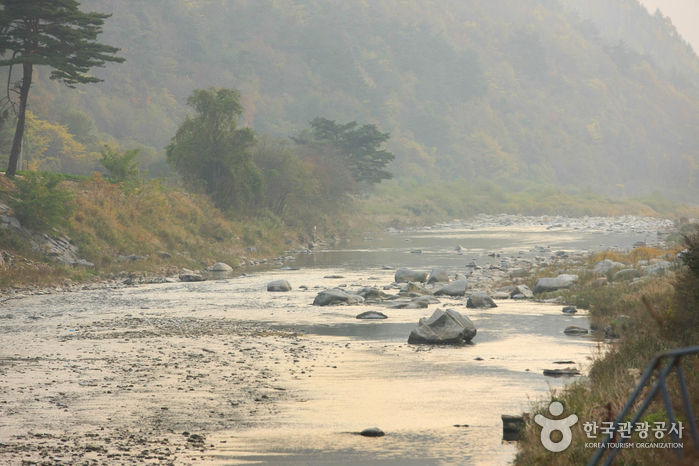 Pour atteindre la vallée Geumdang, descendez le long du fleuve à partir de Jangpyeong ou effectuez la randonnée à partir de l’école élémentaire Anmi. En descendant vers Pyeongchang-eup à partir de la zone de Daehwa-myeon, vous arriverez au niveau d’une intersection nommée « Saechugeori ». Cette dernière se compose deux parties : Sanganmi et Haanmiri, avec un panneau indiquant l’entrée de la vallée. De l’autre côté de la vallée, vous trouverez de curieuses formations rocheuses et des falaises tout au long du fleuve. La zone constitue un habitat de choix pour les loutres (trésor naturel numéro 330) tout en étant un excellent endroit pour la pêche de poisson-chats.