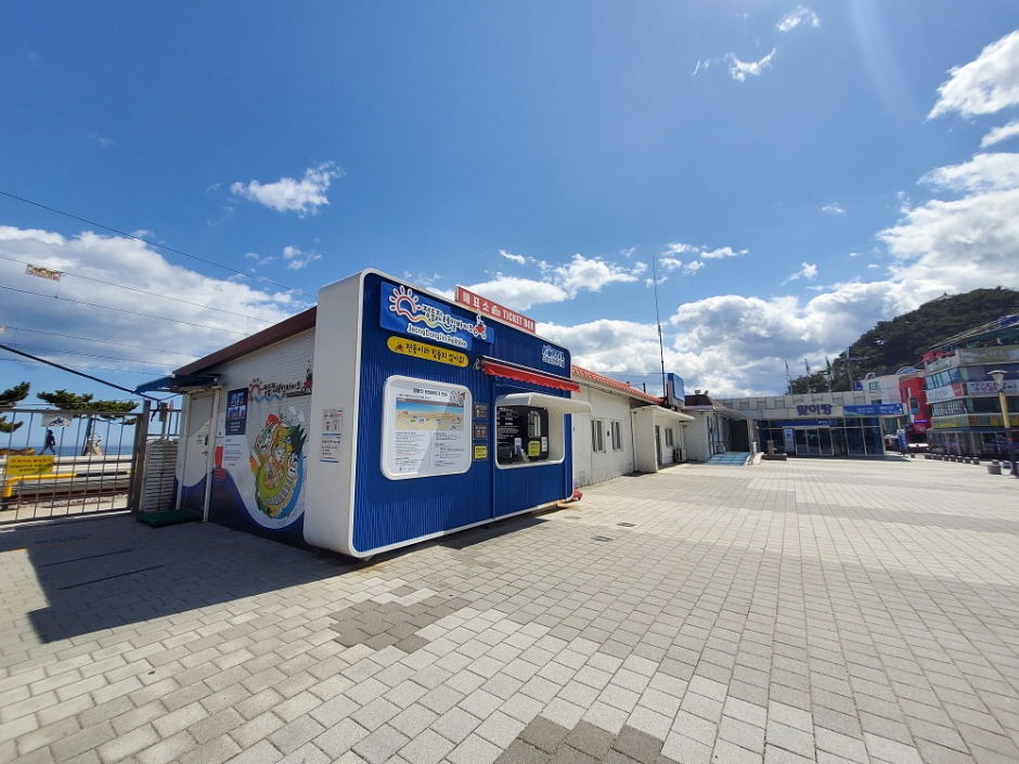 A partir de 9h depuis la gare de Jeongdongjin (puis toutes les heures jusque 17h) soustraire 10 min à l’horaire pour le départ depuis le parc du grand sablier