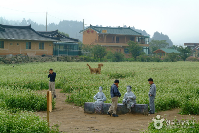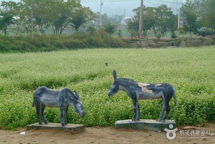 Le village culturel inclut le lieu de naissance de l’auteur , un moulin à eau, Chungjujip, le parc Gasan et la hall commémoratif de Lee Hyo-Seok, le musée du sarrasin. Au pic de la saison de floraison, vous pouvez profiter du magnifique paysage des champs blancs comme neige des fleurs de sarrasin.