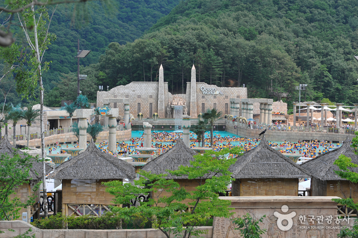 Ocean World possède de nombreuses attractions excitantes comme la rivière extrême longue de 300 mètres, la zone de surf avec ses vagues de 2.4 mètres, le raft familial, le spa familial, etc. Ocean World est divisé en plusieurs zones: zone intérieure, zone extrême et zone dynamique, ouverte en mai 2009.On trouve dans cette nouvelle zone les toboggans Monster Blaster, Super Boomerango et Giant Waterplex. On y trouve aussi un Jjimjilbang (sauna de type coréen), un centre commercial et des restaurants.