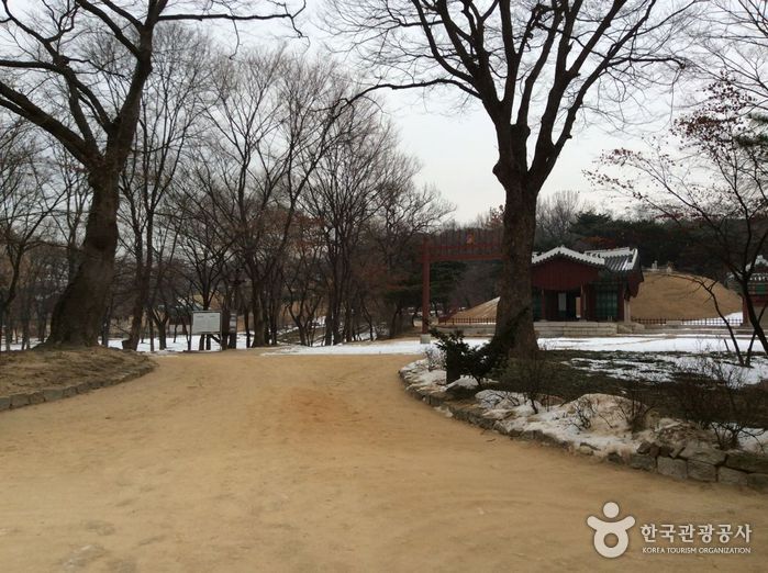 La structure des tombes de Yeonghwiwon et de Sunginwon est simple et raffinée. Cette simplicité qui contraste avec les tombes des rois provient du fait que ces tombes n’abritent qu’un prince et une concubine. En Corée, sous la dynastie Joseon (1392-1910), la hiérarchie était très codifiée. Cette même hiérarchie se traduisait aussi à travers la structure des tombes. Celles des rois et des reines sont appellées “Neung”, elles sont plus vastes et plus fastueuses. A l’inverse, celles des princes et des concubines appellées “won” sont plus simples.Yeonghwiwon et Sunginwon abritent les corps de Sunheon (1854-1911) une concubine du roi Kojong ainsi que Ijin, un prince descendant de Kojong (1921-1923).De composition similaire mais de taille plus grande que l’entrée des tombes, apparaît en premier lieu la Porte Rouge qui délimite l’entrée d’un lieu sacré. Au delà de la porte apparaît ensuite un chemin de pierres qui mène à un sanctuaire en forme de T. C’est à ce sanctuaire en forme de T (jeongja gak) qu’on lieu les rites de vénération aux ancêtres. Les sculptures en forme d’animaux perchées sur le toit y sont remarquables. Ces sculptures ont pour but de repousser les mauvais esprits. A côté du sanctuaire a été élevée une stèle enchassée dans un pavillon, elle permet de connaître l’identité des défunts. Dérrière le sanctuaire se trouvent les tombes. Les statues qui veillent sur ces tombes sont particulièrement amusantes. L’ancien sanctuaire qui fait maintenant office de bureau de gestion du site vaut le coup d’oeil. Les structures en ont été conservés telles quelles. L’automne est la période la plus recommandée pour visiter le lieu en raison de la teinte automnale que prennent les arbres. C’est un lieu de promenade agréable pour son calme et la beauté de son chemin en pierre. Il est très fréquenté par les familles et les couples.