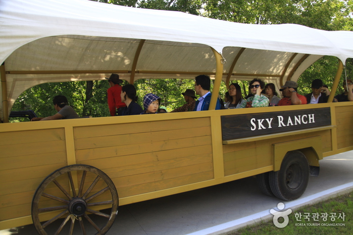 Symbole du site et principal moyen de transport, la calèche tractée emmène les visiteurs dans une balade d’environ 45 minutes à travers le ranch. Depuis le sommet, la vue panoramique sur les vastes prairies procure une sensation de liberté et d’émerveillement. Les visiteurs peuvent également nourrir les animaux, partager un moment de complicité avec eux et immortaliser leur passage dans de nombreux espaces photo pittoresques. Une promenade tranquille à pied autour du site prend environ trois heures.