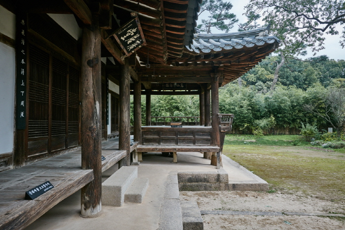 Le Subongjeongsa est le grand bâtiment principal, situé dans le centre de l’ensemble de la zone. Il est utilisé comme un lieu de rassemblement, et dispose de beaux jardins. Le Gwanggeodang est le lieu d’enseignement pour les études et raffinement. L’Insumungo conserve environ 10.000 livres et trésors de la famille.Ce bâtiment était un petit établissement et s’est élargi de plus en plus au fil des années et a également construit un lieu supplémentaire pour prêter les livres.