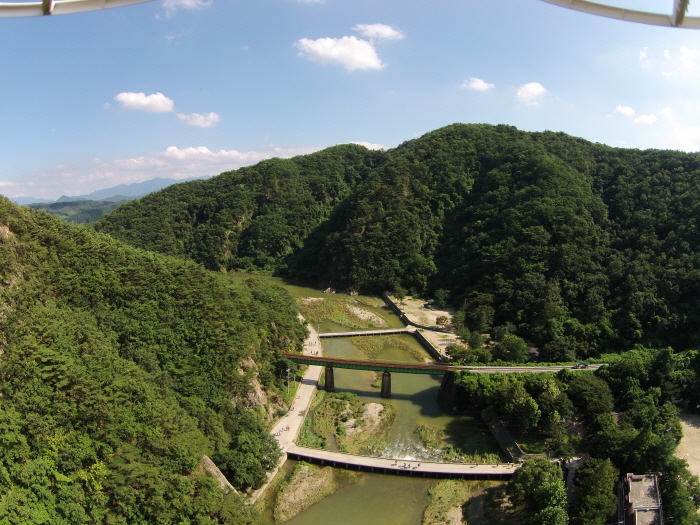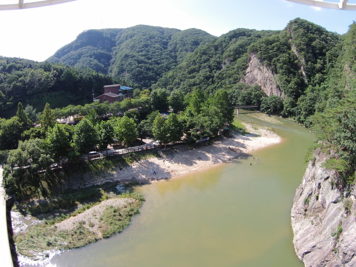 Dans la zone touristique de Ganhyeon, vous trouverez aussi le pont suspendu du mont Sogeum-san, le plus long et le plus grand pont de ce type (100 m de haut, 200 m de long, 1,5 m de large) en Corée. L’aller-retour prend environ 1 heure et 20 minutes. Le plancher du pont a été spécialement construit avec un caillebotis en acier pour donner des frissons aux visiteurs.