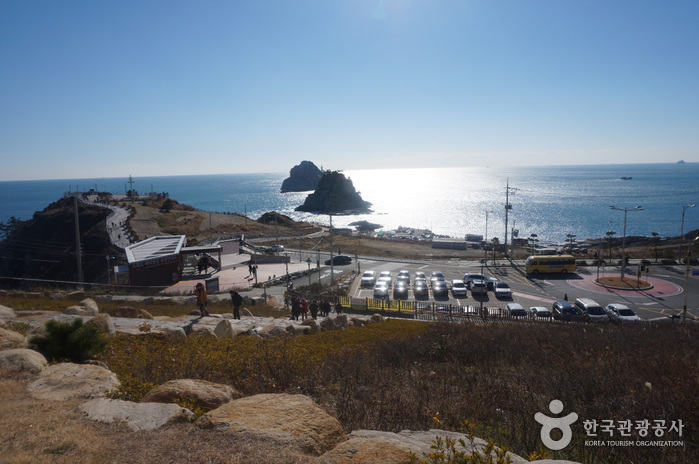 Depuis Dongbaekseom, le panorama sur Busan est particulièrement impressionnant : on aperçoit d’un seul regard la côte de Mipo, la colline Dalmaji, le pont Gwangan qui relie mer et ciel, et les îles Oryukdo, symboles de la mer de Busan. Fidèle à son nom, l’île où fleurissaient autrefois d’innombrables camélias voit encore, de l’hiver au printemps, ses fleurs rouges éclore puis tomber entières au sol, ajoutant une touche de poésie au paysage.